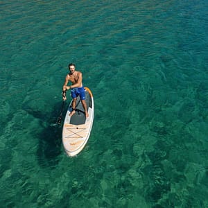 I pakken medfølger en Aqua Marina pumpe for rask og enkel oppblåsing, bæresekk, padleåre (Sports III) og fangreim. Oppblåsbart allround SUP-brett Perfekt for viderekomne innenfor stand up-padling Enestående allsidighet og høy kvalitet, innovasjon og design Avtakbar finne Integrert D-ring med elastisk rem til å feste pakningen Slitesterkt gummihåndtak Diamond grooving footpad som gir utmerket grep og komfort 3-delt justerbar padleåre i aluminium inkluderer.